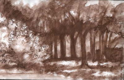 Na pierwszym planie krzew (parzydło leśne) który zachwycił mnie kolorem i formą. Wyglądał jak zielone wybuchy.